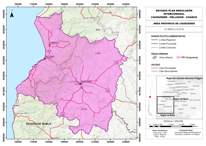 El área territorial que comprende el Plan Regulador Intercomunal de Cauquenes, corresponde a la provincia de Cauquenes, conformada por las comunas de Cauquenes, Chanco y Pelluhue, de la Región del Maule.